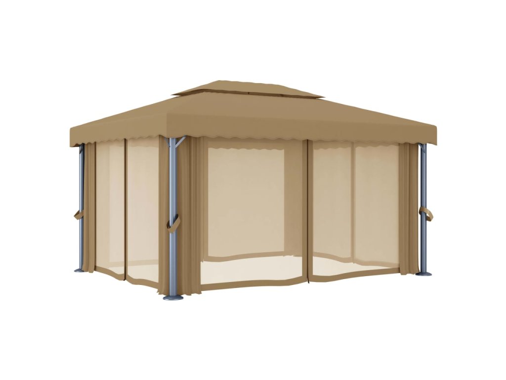 Altán se závěsy 4 x 3 m taupe hliník 3067050
