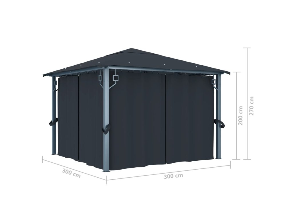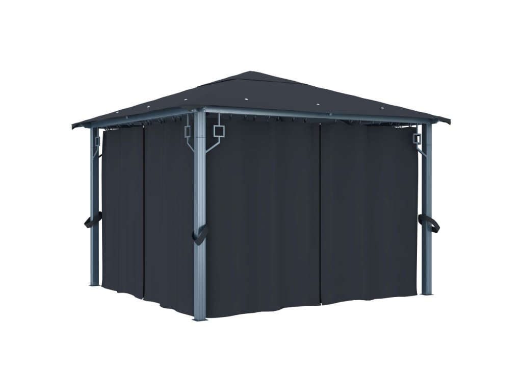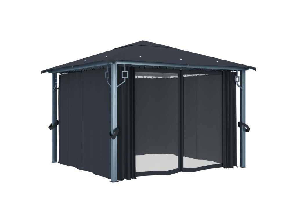 Altán se závěsy a světelnými LED řetězy 3x3m antracitový hliník 3070333