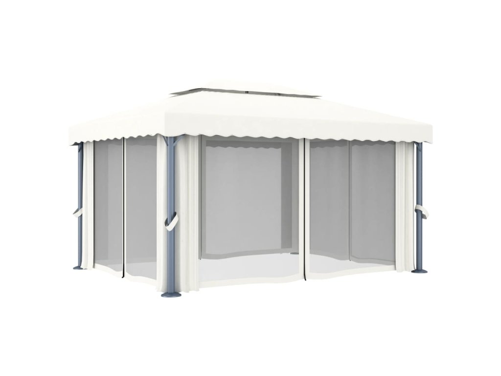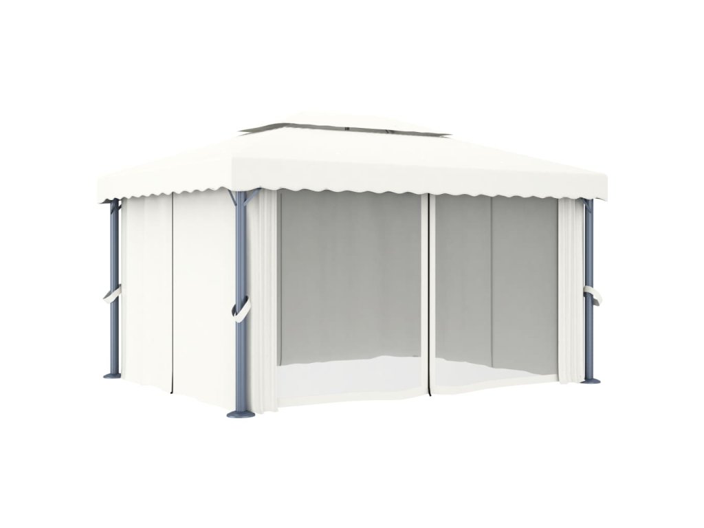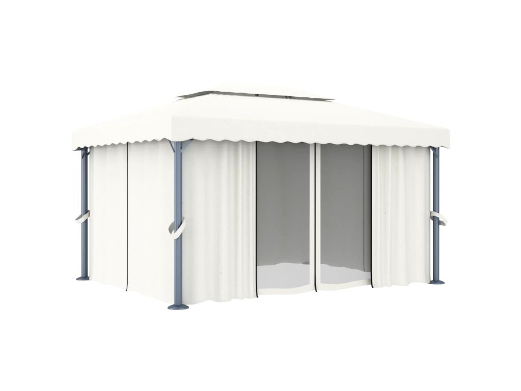 Altán se závěsy a světelnými LED řetězy 4 x 3 m krémově bílý 3070353