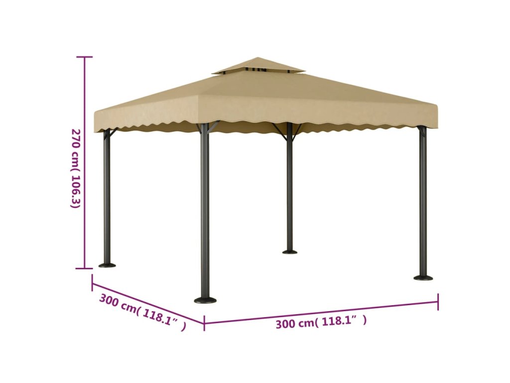 Altán taupe 3 x 3 m hliník a ocel 318522