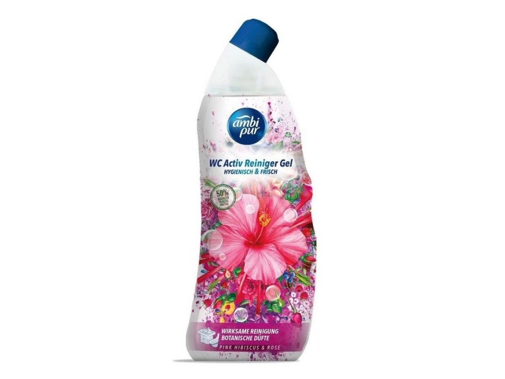 Ambi Pur WC Active Gel 750 ml Pink Hibiscus & Rose zajistí hygienickou čistotu vaší toalety díky svému silnému složení proti vodnímu kameni. Je obohacený o vonné oleje, které provoní toaletu po každém spláchnutí. Pro dokonalou čistotu a lesk vaší toalety. S vůní ibišku a růže.
