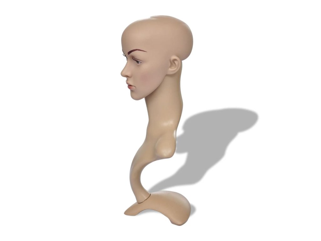 Tato aranžérská hlava je vhodná k vystavení paruk, doplňků, klobouků, slunečních brýlí ve výlohách.