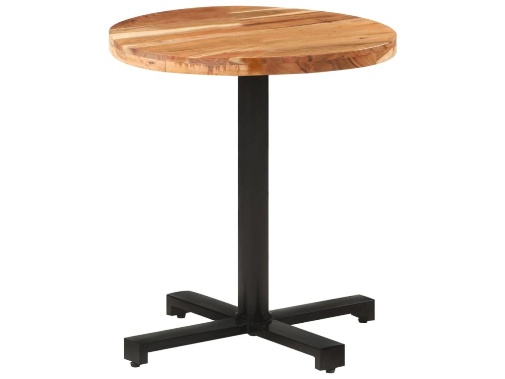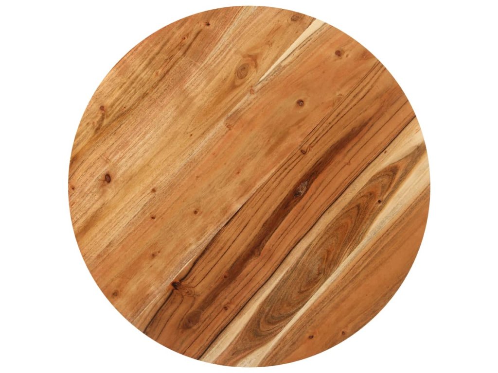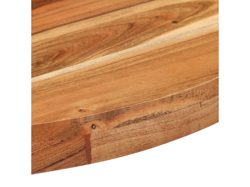 Stolní deska je ručně vyrobená z masivního akáciového dřeva s přírodním povrchem. Základna z černě práškově lakovaného železa zajišťuje výtečnou rovnováhu a pevnost. Tento jídelní stůl vám rovněž poslouží k odkládání nápojů či jiných věcí, které chcete mít vždy po ruce.