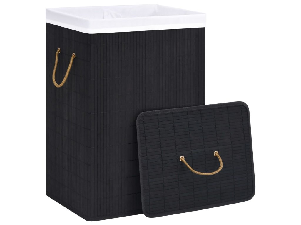 Bambusový koš na prádlo se 2 přihrádkami černý 72 l 320745