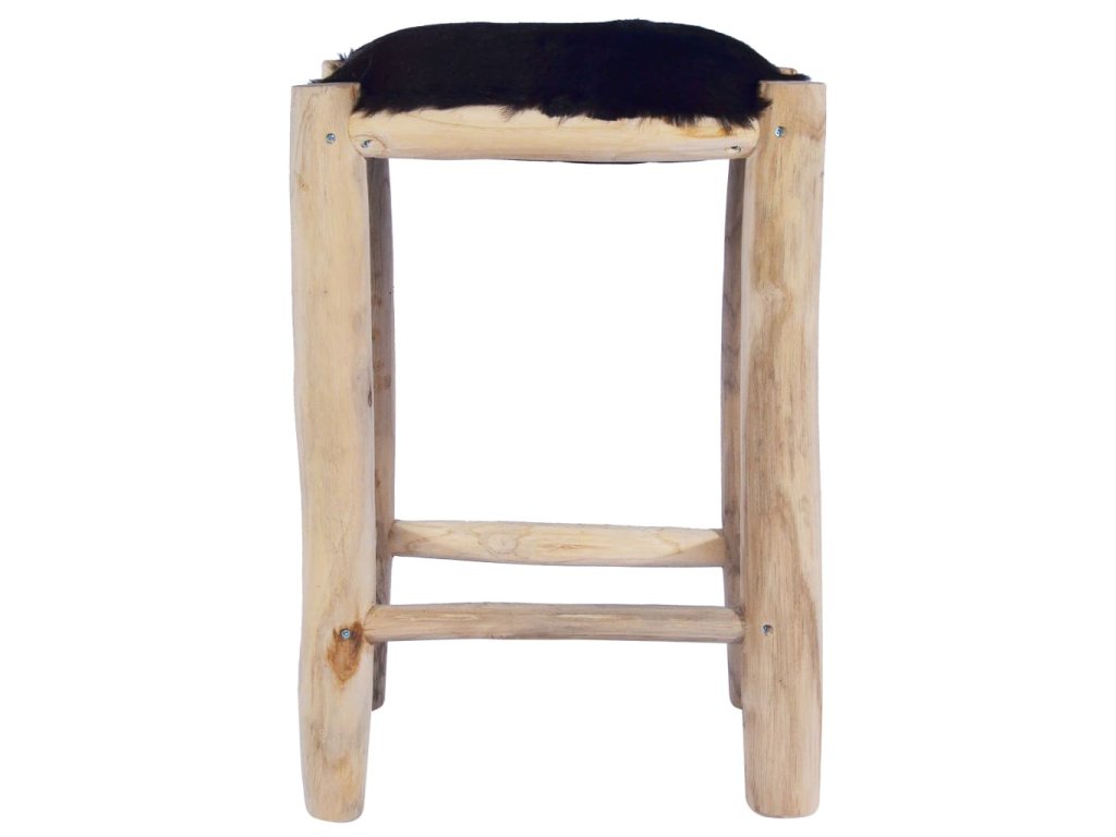 Barová stolička má masivní rám z teakového dřeva, takže je stabilní a odolná. Sedák je čalouněný 100% pravou kozí kůží, která je na dotek příjemně měkká a pohodlná. Jedná se o přírodní kůži, a proto je každý kus jedinečný a mírně se liší od všech ostatních.