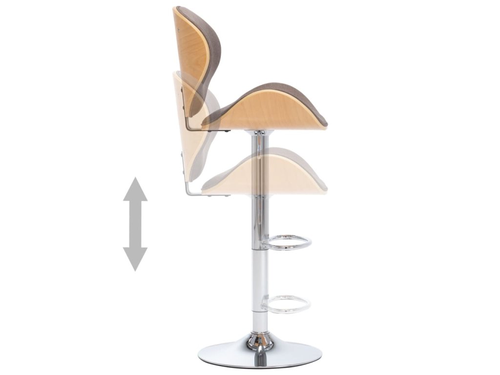 Židle je čalouněná měkkou látkou, která vám zajistí optimální pohodlí. Dřevěný rám jí dodává na kráse i stylovosti. Chromovaná kovová podstava židle zaručuje mimořádnou odolnost a vestavěná opěrka na nohy vám poskytne dodatečný komfort. Vzhledem k ergonomickému tvaru se na židli můžete pohodlně uvelebit na celé hodiny. Mechanismus s plynovým pístem umožňuje nastavit si její výšku dle momentálních potřeb. Barová židle představuje ideální doplněk do každého funkčně zařízeného baru či jídelny.