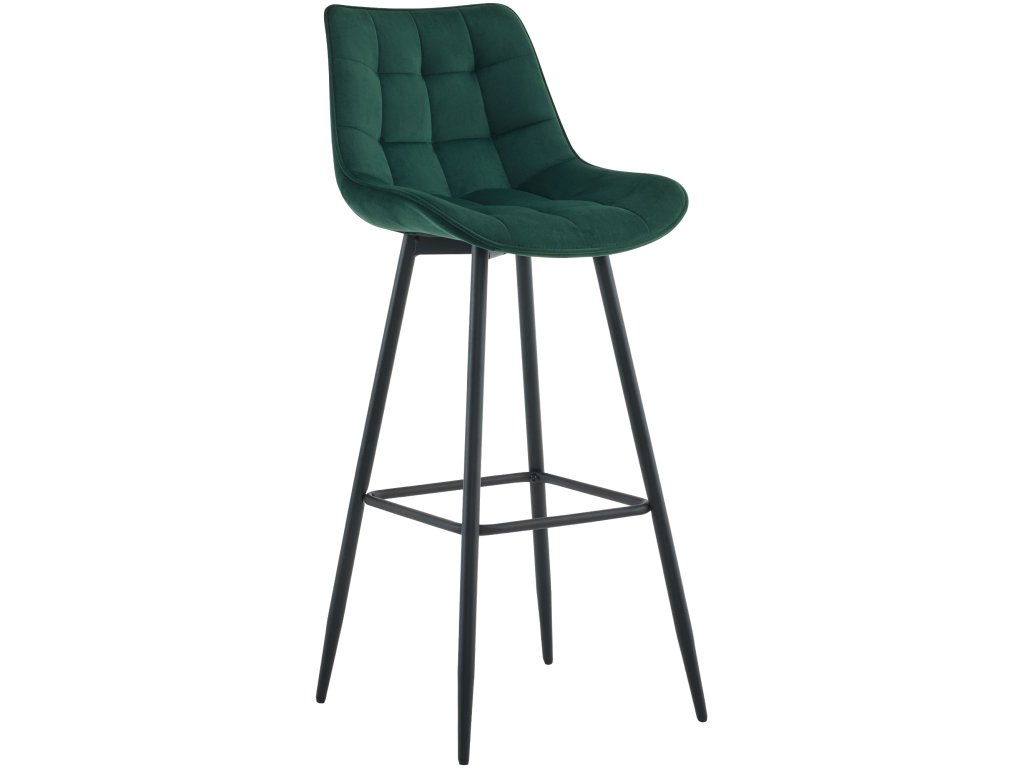 Matný černý rám a módní potah dodávají stoličce elegantní vzhled. Pultový taburet je volitelně k dispozici s prošívaným látkovým nebo sametovým potahem.
