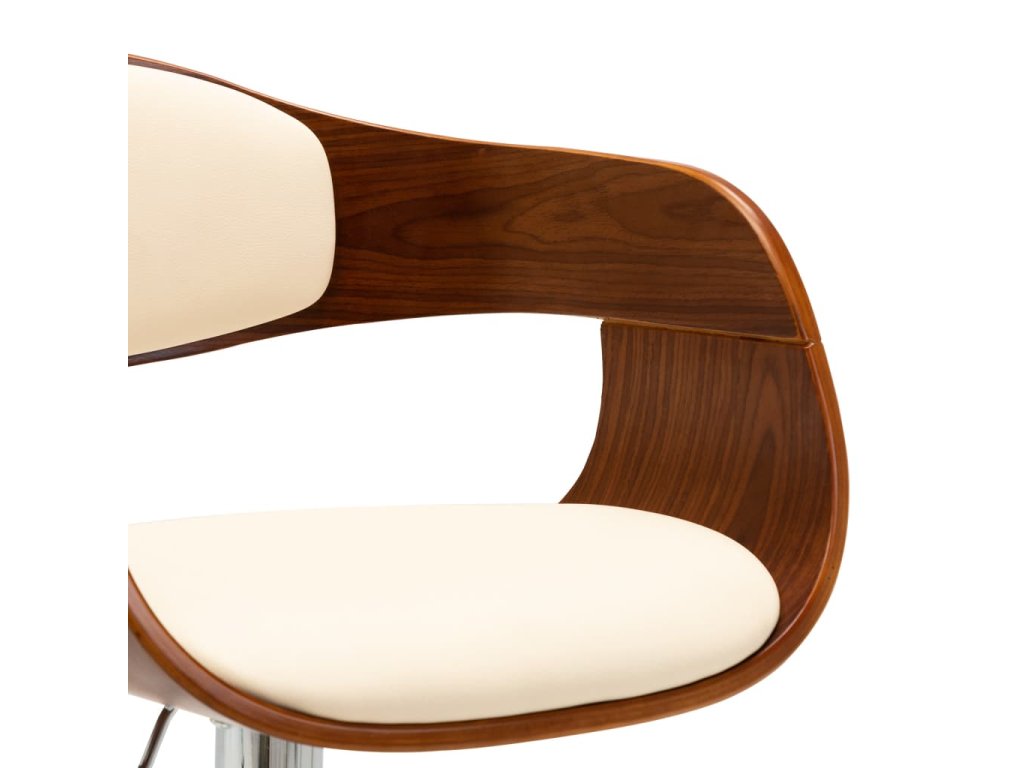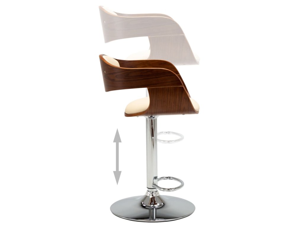 Židle je čalouněná umělou kůží, která vám jednak zajistí optimální pohodlí, a navíc se snadno čistí. Rám z ohýbaného dřeva jí dodává na kráse i stylovosti. Pochromovaná kovová podstava židle zaručuje mimořádnou odolnost a vestavěná opěrka na nohy vám poskytne dodatečný komfort. Vzhledem k ergonomickému tvaru se na židli můžete pohodlně uvelebit na celé hodiny. Mechanismus s plynovým pístem umožňuje nastavovat její výšku. Barová židlička představuje dokonalý doplněk do každého funkčního baru či jídelny.