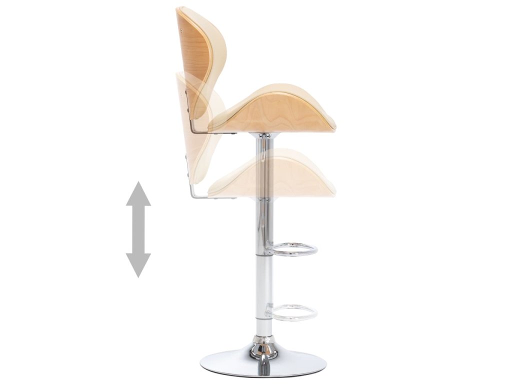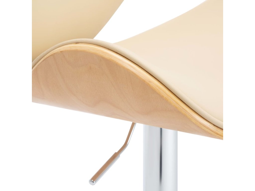 Židle je čalouněná umělou kůží, která vám jednak zajistí optimální pohodlí a jednak se snadno čistí. Dřevěný rám jí dodává na kráse i stylovosti. Chromovaná kovová podstava židle zaručuje mimořádnou odolnost a vestavěná opěrka na nohy vám poskytne dodatečný komfort. Vzhledem k ergonomickému tvaru se na židli můžete pohodlně uvelebit na celé hodiny. Mechanismus s plynovým pístem umožňuje nastavit si její výšku dle momentálních potřeb. Barová židle představuje ideální doplněk do každého funkčně zařízeného baru či jídelny.