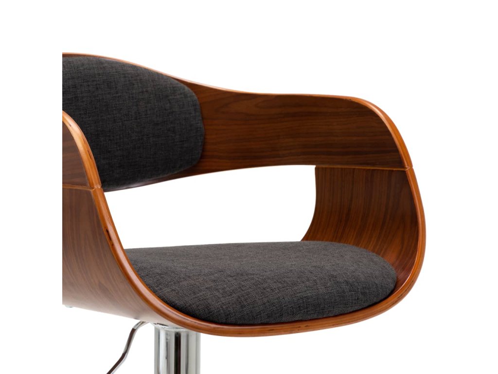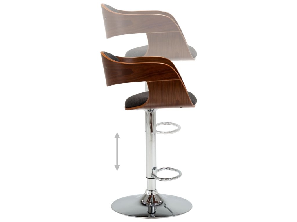 Židle je polstrovaná na dotek měkkou a příjemnou látkou, která je zárukou optimálního pohodlí. Rám z ohýbaného dřeva jí dodává na kráse i stylovosti. Pochromovaná kovová podstava židle zaručuje mimořádnou odolnost a vestavěná opěrka na nohy vám poskytne dodatečný komfort. Vzhledem k ergonomickému tvaru se na židli můžete pohodlně uvelebit na celé hodiny. Mechanismus s plynovým pístem umožňuje nastavovat její výšku. Barová židlička představuje dokonalý doplněk do každého funkčního baru či jídelny.