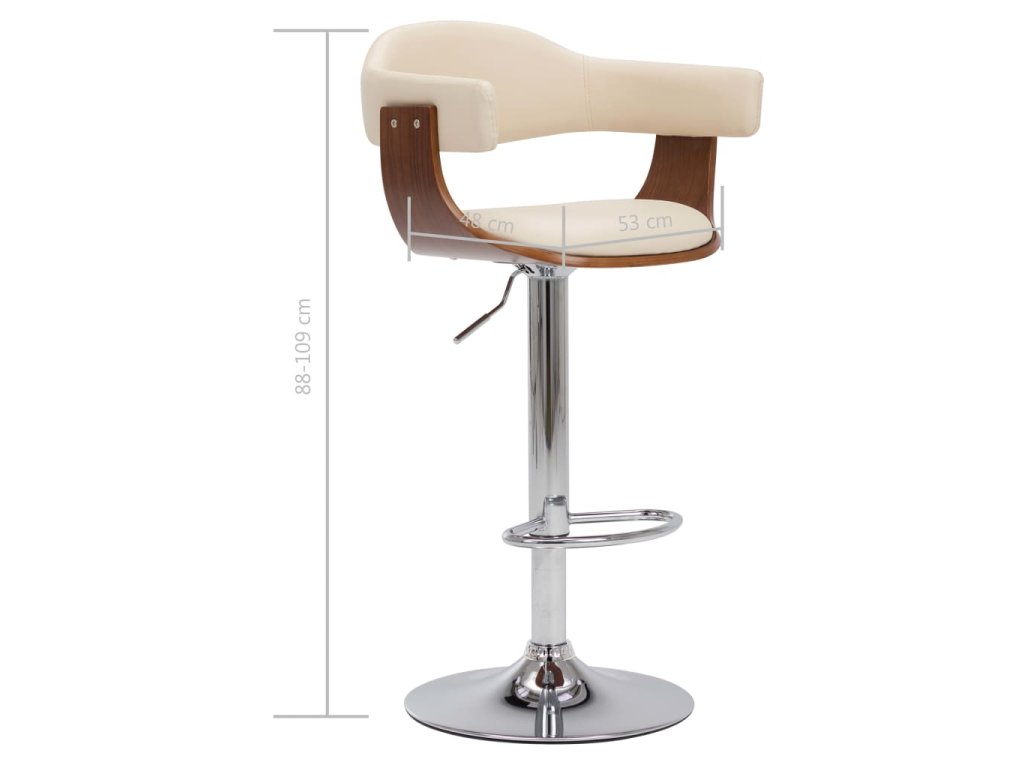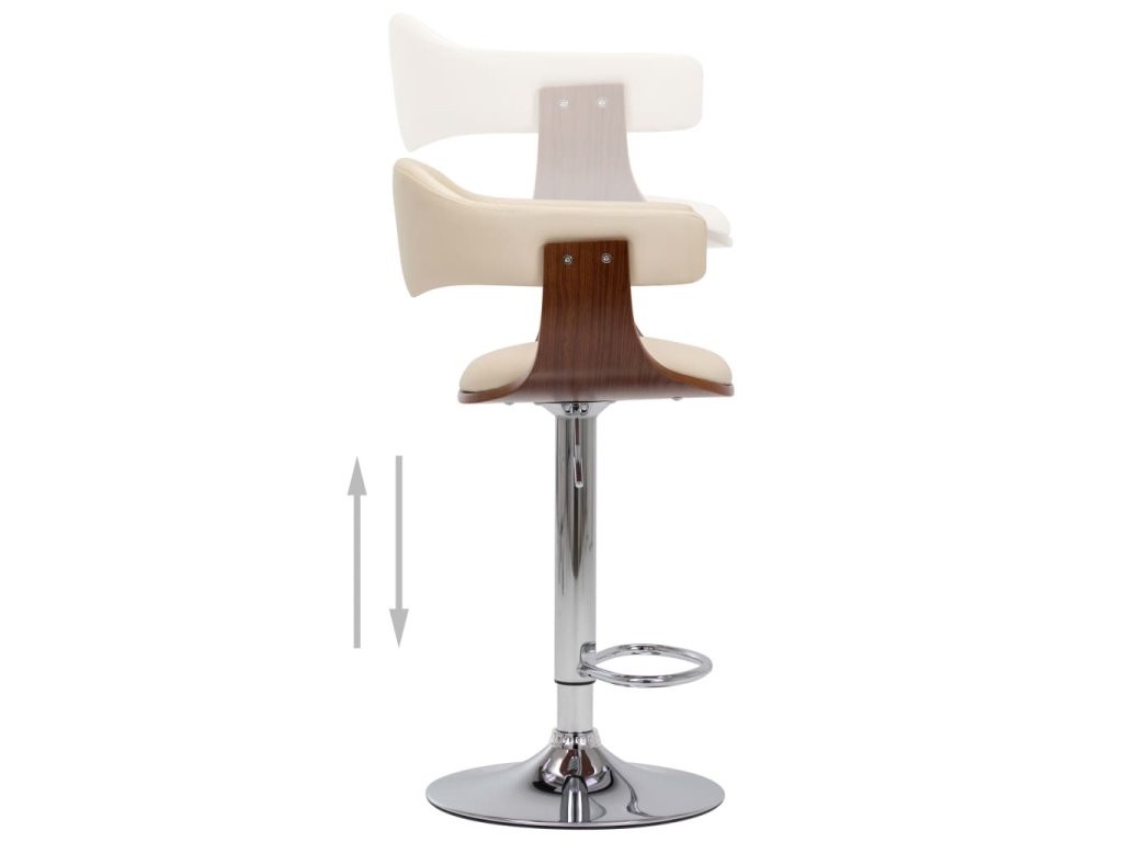 Stolička je potažená vysoce kvalitní umělou kůží a dobře polstrovaná, aby se vám na ní pohodlně sedělo. Rám z ohýbaného dřeva podtrhuje její jedinečnou krásu a styl. Železná konstrukce zaručuje vysokou odolnost, zatímco zapuštěná opěrka nohou vám zpříjemní posezení. Vzhledem k ergonomickému tvaru se na židli můžete pohodlně uvelebit na celé hodiny. Mechanismus s plynovým pístem umožňuje nastavovat její výšku. Barová stolička představuje dokonalý doplněk do každého funkčního baru či jídelny.