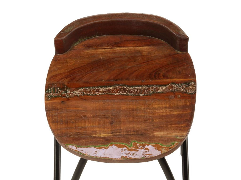 Barové stoličky jsou zhotovené z masivního recyklovaného dřeva a pevného ocelového rámu, a proto jsou velmi stabilní a pevné. Recyklované dřevo pochází z trámů, podlah a podpěrných nosníků ze starých budov určených k demolici. Může tedy obsahovat celou řadu různých typů dřeva, jako je borovice, teak, buk, dub, cedr, mangovník, akácie atd. Recyklované dřevo tak nabývá vlastností všech těchto rozličných druhů dřeva. Recyklované dřevo je již zestárlé, ošlehané a vyschlé, takže se nesmršťuje ani neohýbá. Díky opěradlu a opěrkám na nohy jsou židle velmi pohodlné. Každá fáze výrobního procesu je prováděna s největší pečlivostí, ať už se jedná o rekombinaci, leštění, natírání anebo lakování. Sestavení sady je snadné. Balení obsahuje 2 barové stoličky.