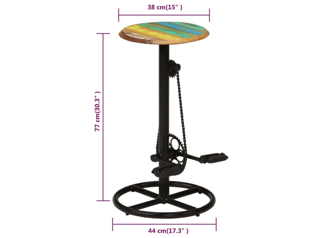 Barové stoličky jsou zhotovené z masivního recyklovaného dřeva a oceli a jsou vysoce stabilní a pevné. Recyklované dřevo pochází z trámů, podlah a podpěrných nosníků ze starých budov určených k demolici. Může tedy obsahovat celou řadu různých typů dřeva, jako je borovice, teak, buk, dub, cedr, mangovník, akácie atd. Recyklované dřevo tak nabývá vlastností všech těchto rozličných druhů dřeva. Recyklované dřevo je již zestárlé, ošlehané a vyschlé, takže se nesmršťuje ani neohýbá. Každá fáze výrobního procesu je prováděna s největší pečlivostí, ať už se jedná o rekombinaci, leštění, natírání anebo lakování. Balení obsahuje 2 barové židle. Tuto sadu je třeba sestavit.