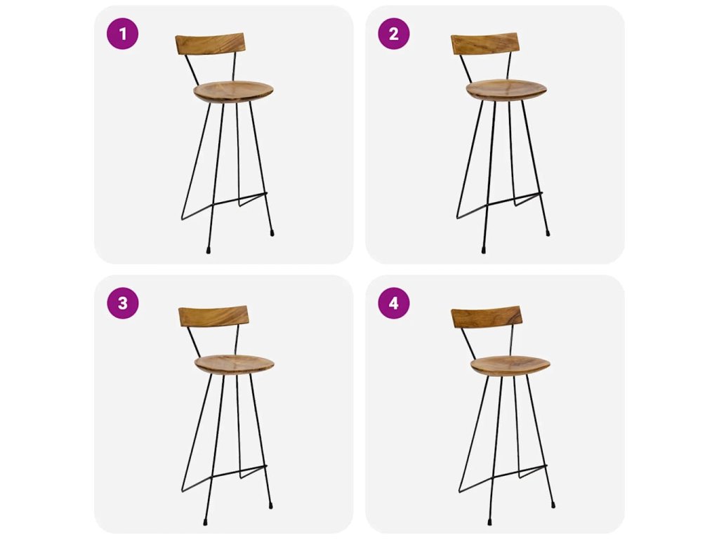 Důležité upozornění: Odstín a kresba dřeva se mohou lišit kus od kusu, každá z našich barových stoliček je proto skutečným unikátem. Výběr kusu k dodání je náhodný.