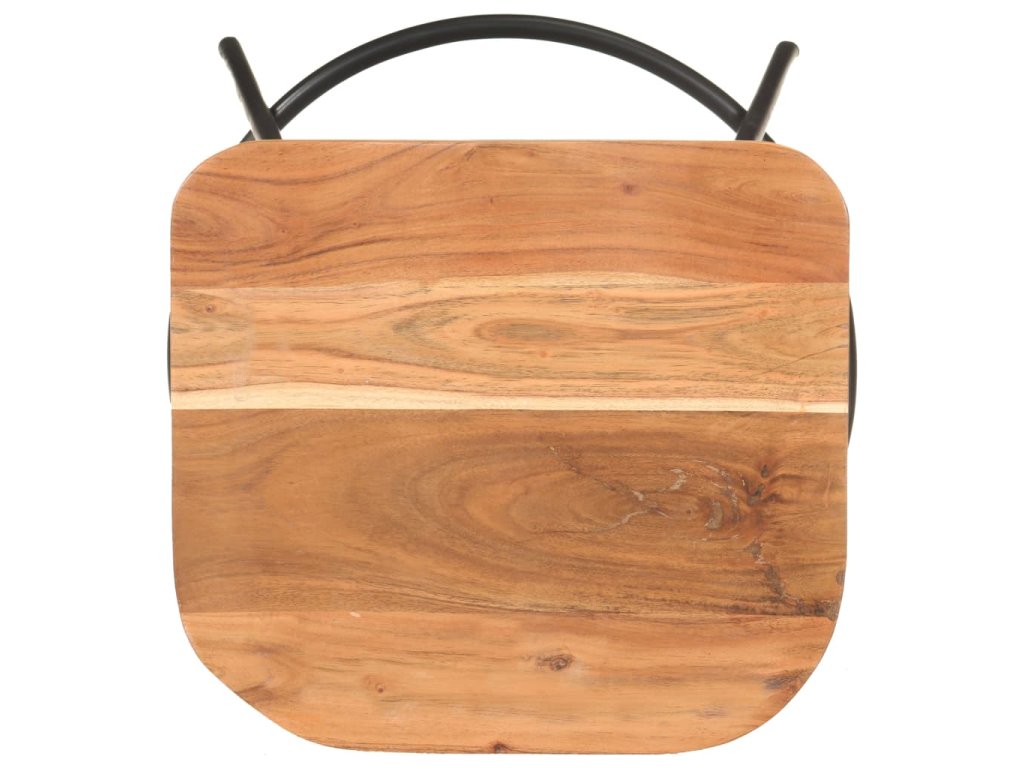 - Materiál: masivní akáciové dřevo s přírodním povrchem, černě práškově lakované železo