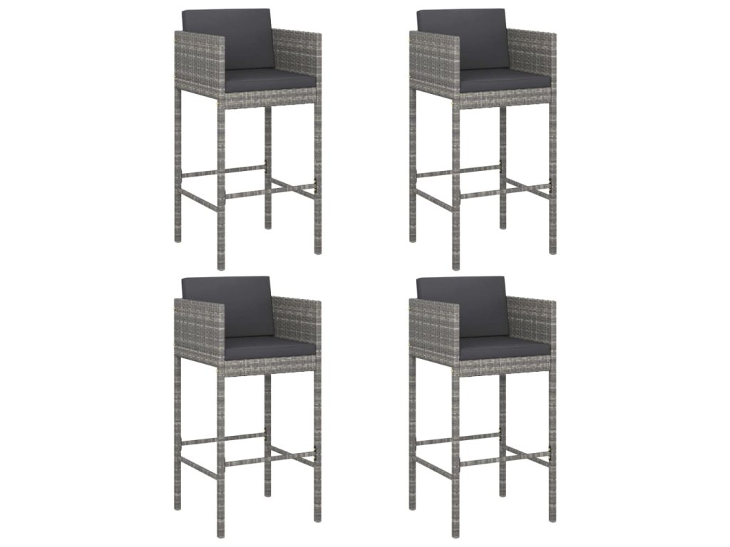 Barové stoličky 4 ks s poduškami šedé polyratan 316677