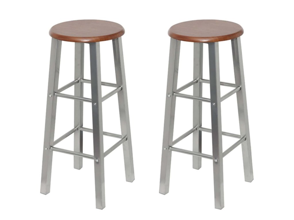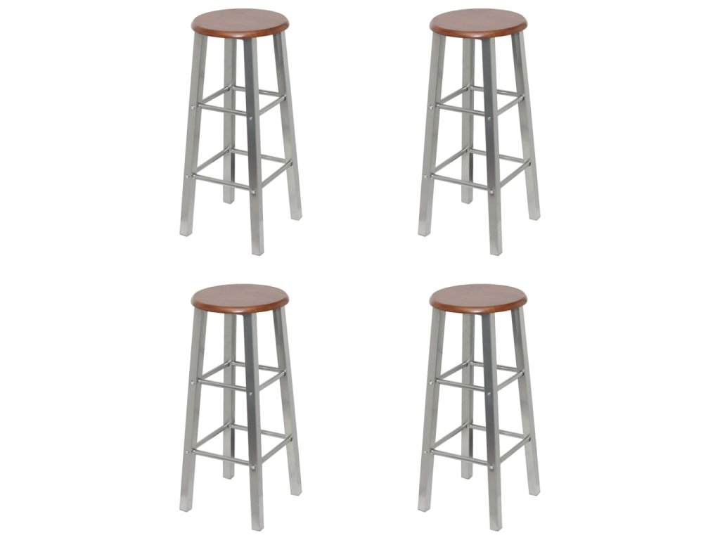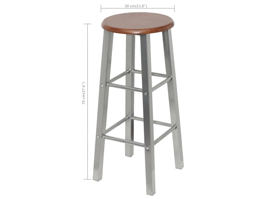Každá barová stolička má pevnou konstrukci se 2 opěrkami nohou, každou v jiné výšce, takže se vám na nich bude pohodlně sedět během celého večera. Sedák stoliček je vyroben z hnědé MDF desky a jejich rám je ocelový. Sestavení barových stoliček je velmi snadné a v případě potřeby se velmi snadno čistí.