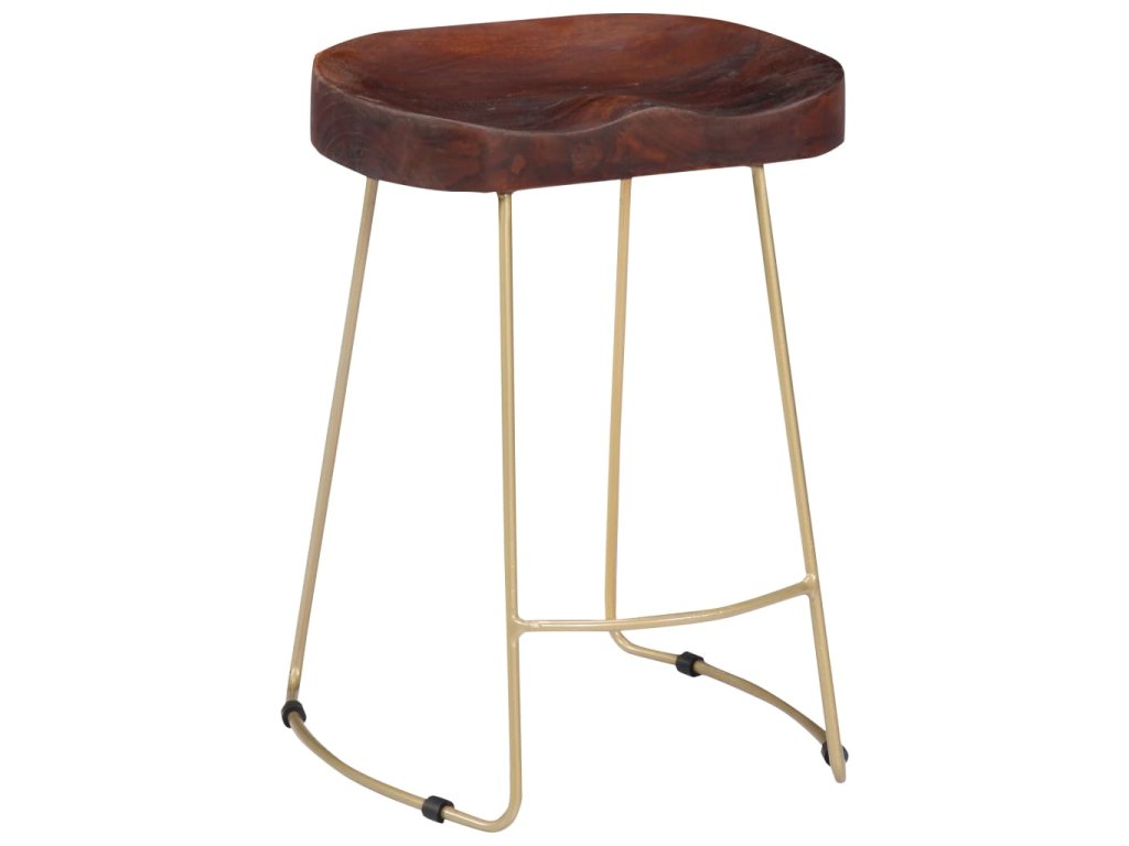 Barová židle ve vintage stylu je zhotovena z masivního mangovníku, což je tvrdé dřevo s hustou strukturou. Hrubé mangovníkové dřevo je nejen schopné unést značnou váhu, ale výborně také odolává opotřebení a působení času. Barová židlička je proto stabilní, odolná a příjemná na pohled. Precizní řemeslné zpracování je zárukou toho, že je každé fázi výrobního procesu věnována mimořádná péče, ať už se jedná o leštění, natírání anebo lakování. Barová stolička Gavin je celá ručně vyrobená a rafinovaná kresba dřeva činí každou z nich výjimečnou a lehce odlišnou od ostatních. Mosazné železo s práškovým nástřikem židli dodává na pevnosti a zároveň podtrhuje její industriální styl.