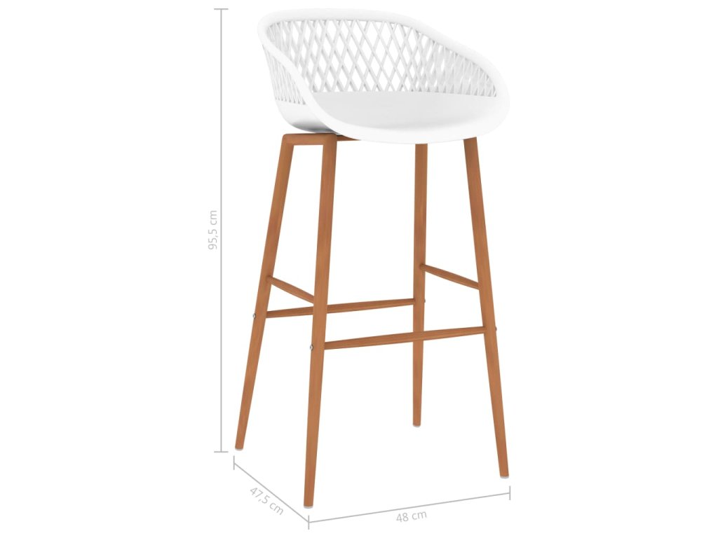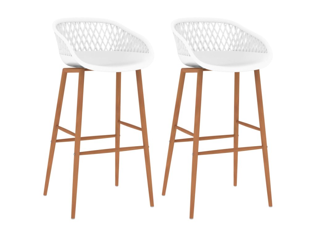 Barové židle mají ergonomicky tvarované sedadlo s integrovaným nízkým opěradlem a vyplétaným vzhledem. Jsou vyrobené z robustního PP materiálu a stojí na pevných kovových nohách s transférovým potiskem s dřevěným vzhledem, takže jsou robustní a odolné.