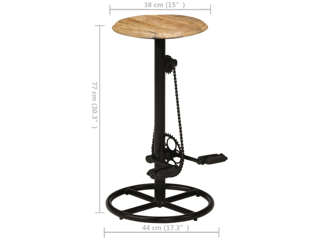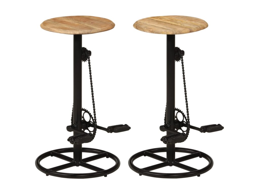 Barové stoličky jsou vyrobeny z masivního mangovníkového dřeva a oceli, díky čemuž jsou velmi stabilní a odolné. Disponují opěrkami nohou, které se podobají pedálům kola a přispívají nejen k pohodlnému sezení, ale navíc podtrhují industriální styl židlí. Každá fáze výrobního procesu je prováděna s největší pečlivostí, ať už se jedná o rekombinaci, leštění, natírání anebo lakování. Balení obsahuje 2 barové židle. Tuto sadu je třeba sestavit.