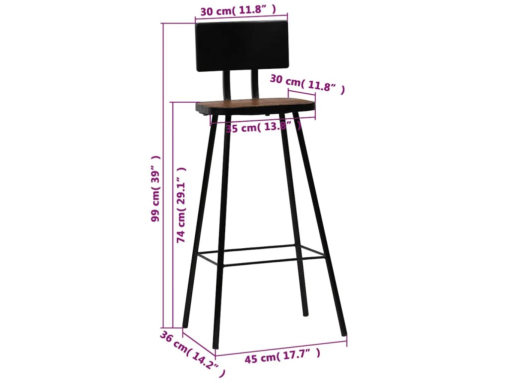 Tyto dřevěné barové židle, designované ve starožitném stylu s industriálním šarmem, jsou dokonalým nadčasovým doplňkem do vaší domácnosti.