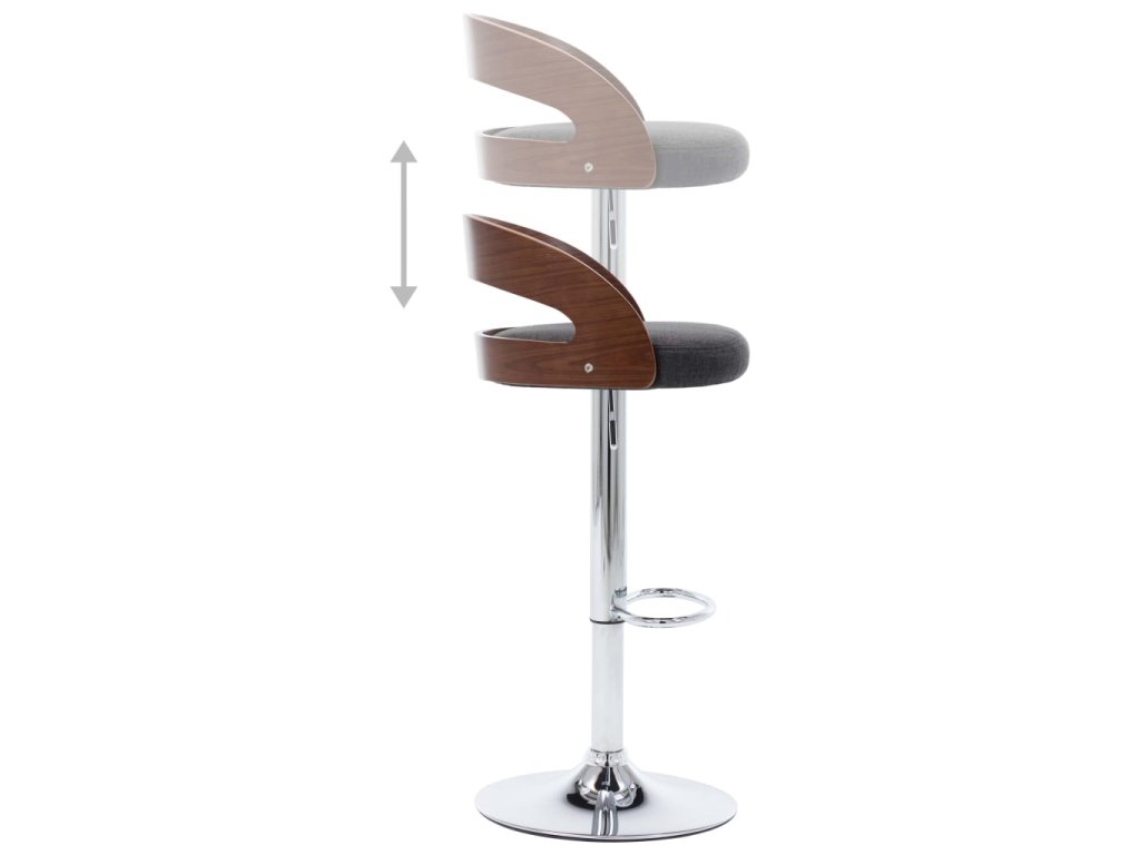 Sedák z vysoce kvalitního textilního čalounění je příjemně polstrovaný. Rám z ohýbaného dřeva dodává židli unikátní krásu a styl. Kovový rám je velmi odolný a zabudovaná opěrka nohou s ergonomickým designem přispívají ke komfortu při sezení. Výšku židlí lze nastavit díky zvedacímu mechanismu s plynovým pístem. Tato sada barových židlí bude skvělým doplňkem všech barů a jídelen.
