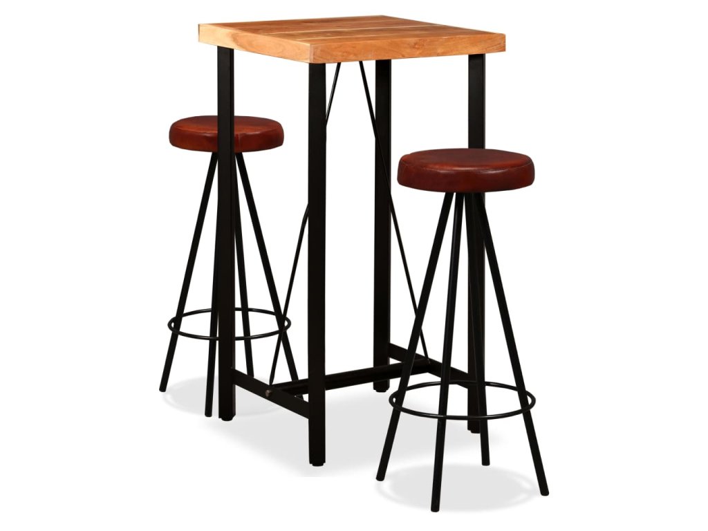 Barový set 3 kusy masivní akáciové dřevo a pravá kůže 275127