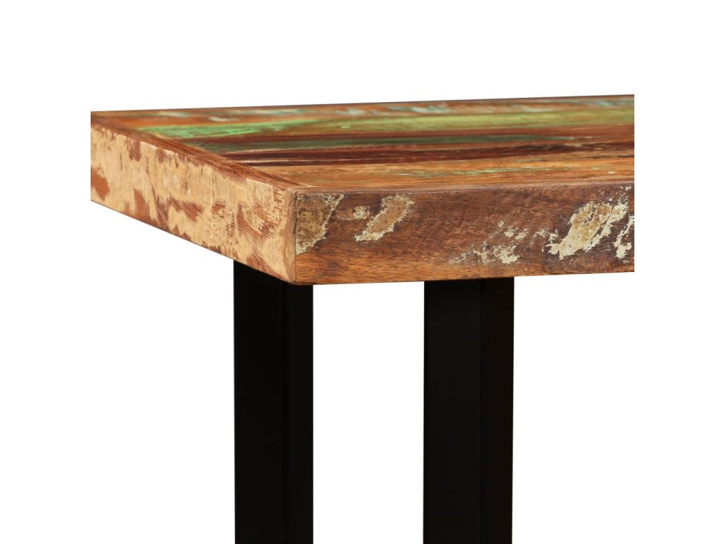 Barový stůl je vyrobený z masivního recyklovaného dřeva, takže má vlastnosti různých dřevin, jako jsou teak, mangovníkové dřevo, akácie atd. Recyklované dřevo je pevné, stabilní, odolné a také krásné. Známky opotřebení a řemeslného zpracování dávají každému kusu nábytku jedinečný charakter. Stůl je navíc celý ručně vyrobený. Silné ocelové nohy zajišťují stabilitu a odolnost stolu a umocňují jeho působivý industriální styl. Důležité upozornění: Kresba a odstín dřeva se mohou lišit kus od kusu, a proto je každý kus nábytku naprosto jedinečný. Výběr kusu k dodání je náhodný.
