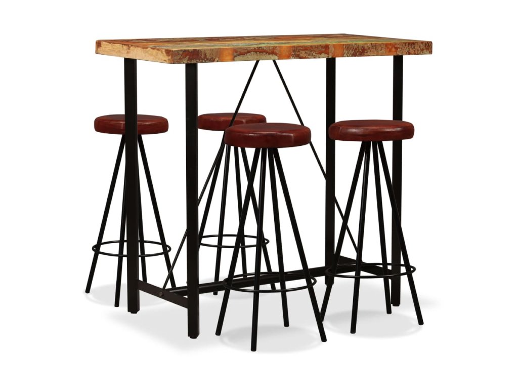 Barový set 5 kusů masivní recyklované dřevo a pravá kůže 275142