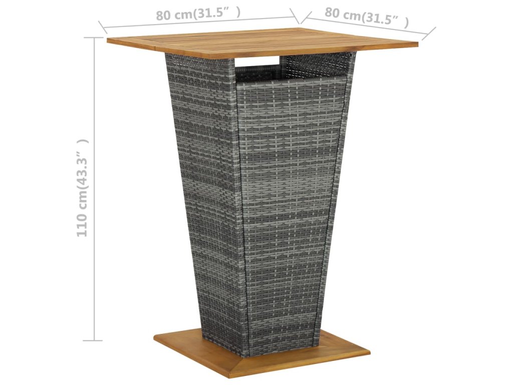Barový stůl šedý 80 x 80 x 110 cm polyratan a masivní akácie 313466