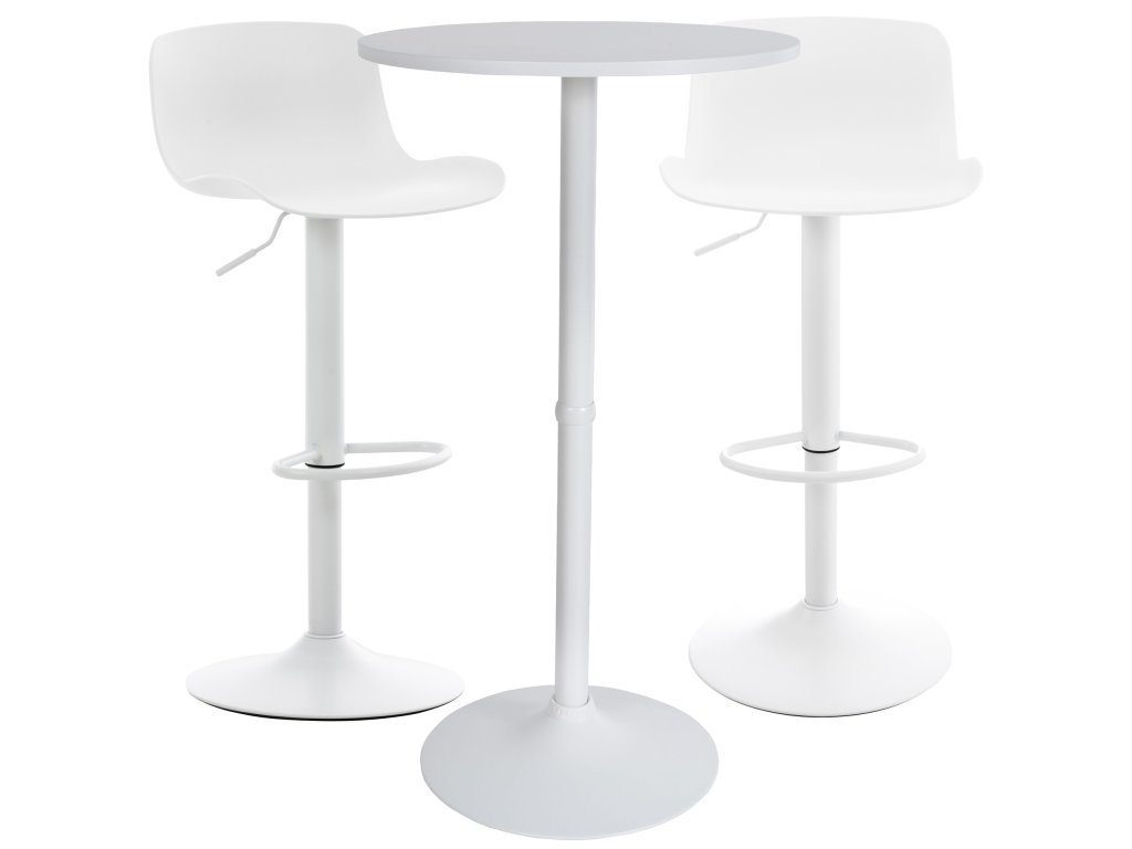 Dvojdílná sada barových stolků MedoraSada barových stolků Medora tvoří sedací soupravu s kulatým barovým stolem a dvěma výškově nastavitelnými barovými židlemi z modelu Almada. Díky svému modernímu designu tato souprava vylepší například kuchyně, jídelny a obývací pokoje. Každá barová židle má moderní, zakřivenou skořepinu sedáku z polypropylenu. Ten nabízí nejen příjemné pohodlí, ale také se mimořádně snadno čistí. Robustní rám stoliček je plynule výškově nastavitelný a je vyroben z kovu, na přání v černé nebo matné bílé barvě. Barevně sladěný kov je spojovacím prvkem mezi všemi komponenty soupravy, protože na kovovém rámu stojí i kulatý barový stůl. To znamená, že nejen židle, ale i stůl jsou robustní a stabilní.