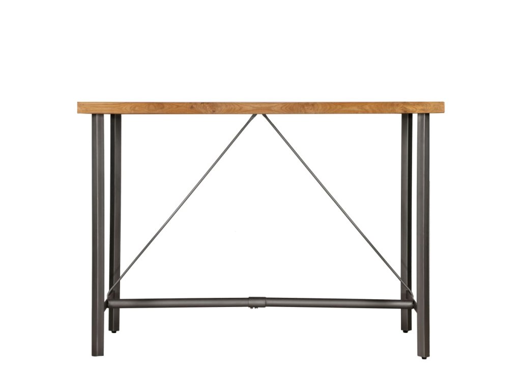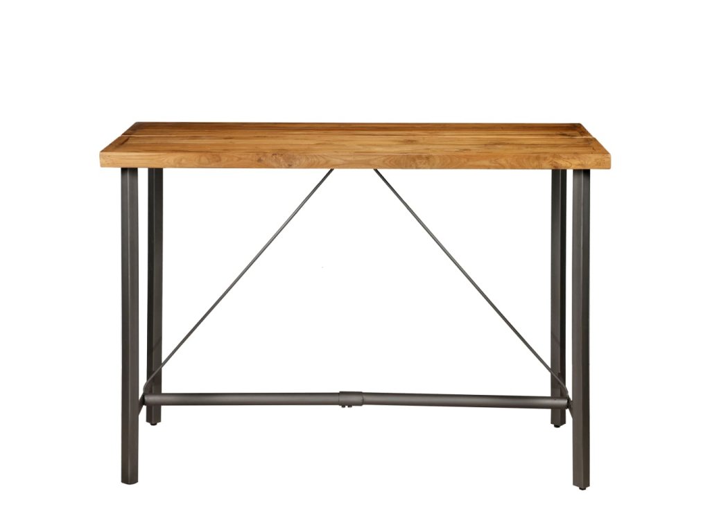 Stolní deska je vyrobena z recyklovaného teaku, který je nejen pevný, stabilní a odolný, ale zároveň také krásně vypadá. Robustní ocelové nohy přispívají k bytelnosti stolu i k jeho industriálnímu stylu. Každá fáze výrobního procesu je prováděna s největší pečlivostí, ať už se jedná o leštění nebo lakování. Sestavení barového stolu je snadné.