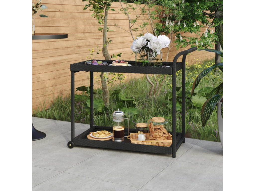 Tento vozík je vyroben z polyratanu, je odolný vůči povětrnostním vlivům a vyžaduje minimální údržbu. Poskytuje dostatečný úložný prostor pro umístění nápojů, lahodných pokrmů, ovoce atd. Ocelový rám s práškovým nástřikem zajišťuje stabilitu a odolnost vozíku. Pomocí rukojeti na horní straně můžete vozík snadno tlačit nebo táhnout za sebou. Disponuje hladce se otáčejícími kolečky, takže lze s vozíkem bez námahy pohybovat.