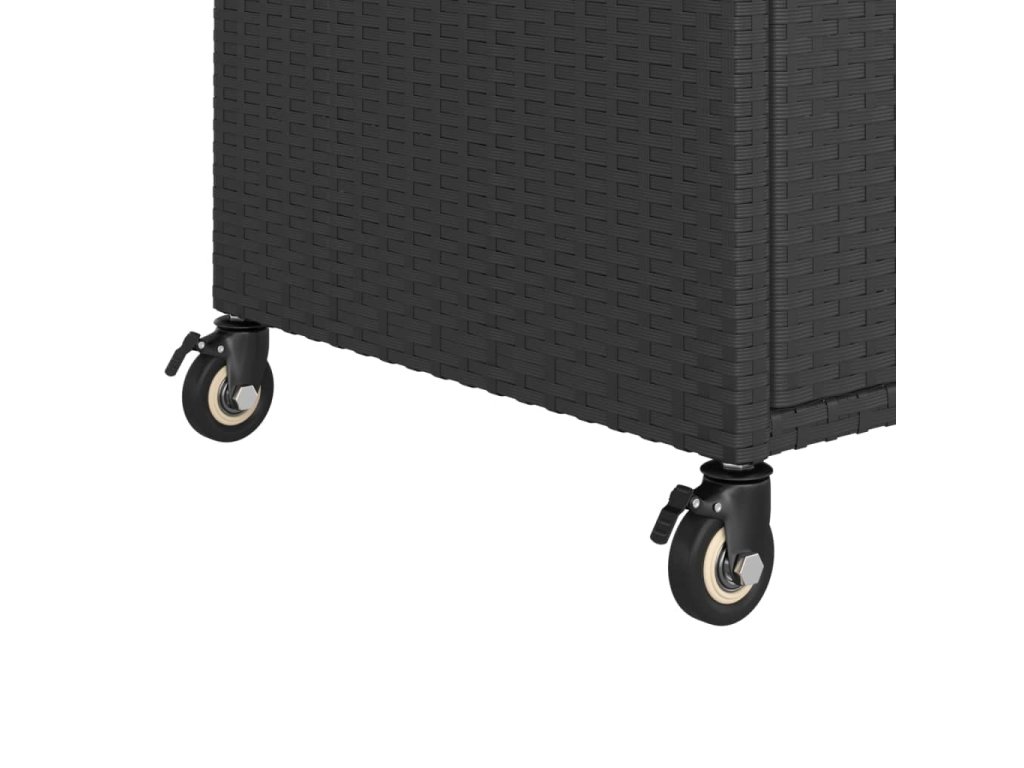 Vozík je vyroben z polyratanu, je odolný vůči povětrnostním vlivům a vyžaduje minimální údržbu. Je vhodný pro každodenní použití. Zahradní vozík je vybaven zásuvkou, takže jídlo nevypadne. Ocelový rám s práškovým nástřikem zajišťuje stabilitu a robustnost vozíku. Pomocí rukojeti na horní straně můžete vozík snadno tlačit nebo táhnout za sebou. Disponuje hladce se otáčejícími kolečky, lze s ním tedy bez námahy pohybovat. Dvě z pojezdových koleček se dají zaaretovat, takže ho snadno ukotvíte na místě.