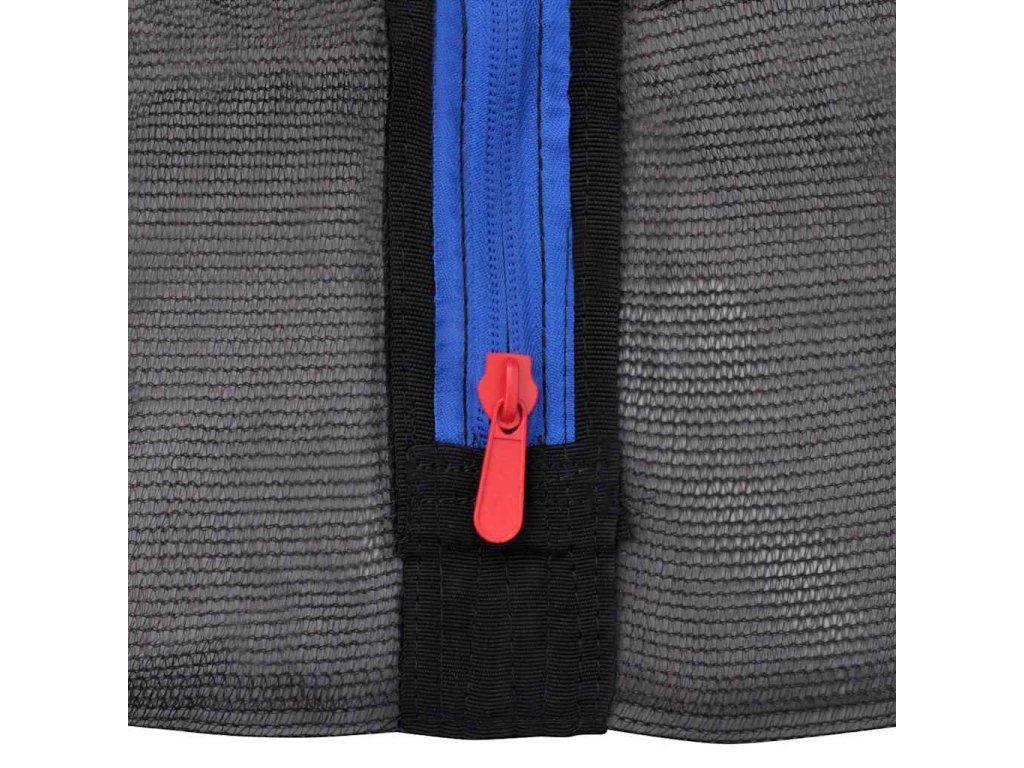 Vstup je opatřen vysoce kvalitním zipem, upevněným na jednom z 8 sloupků, díky kterému je snazší rozzipovat a zazipovat celou síť. Spolu s přezkou tento vstupní systém dokonale zaručuje bezpečnost vašich dětí, když hopsají na sluníčku. Tato náhradní bezpečnostní síť je určena pro trampolíny 3,66 m, které můžete najít v našem obchodě (SKU: 142093).
