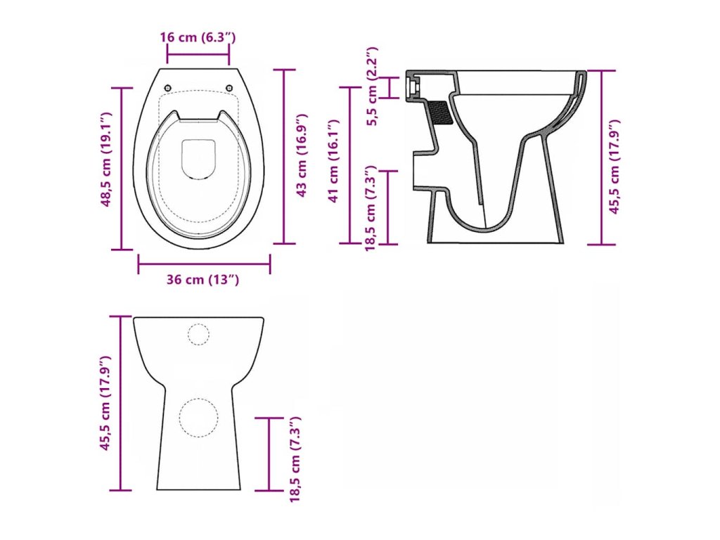 WC sedátko s automatickým mechanismem měkkého zavírání předchází třesknutí víka o toaletu. Zvýšení o +7 cm vám poskytne extra pohodlí při sezení, zejména pro vysoké lidi a seniory. Sestavení záchodové mísy je snadné.