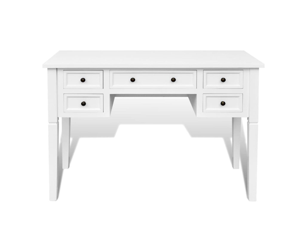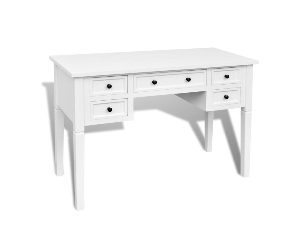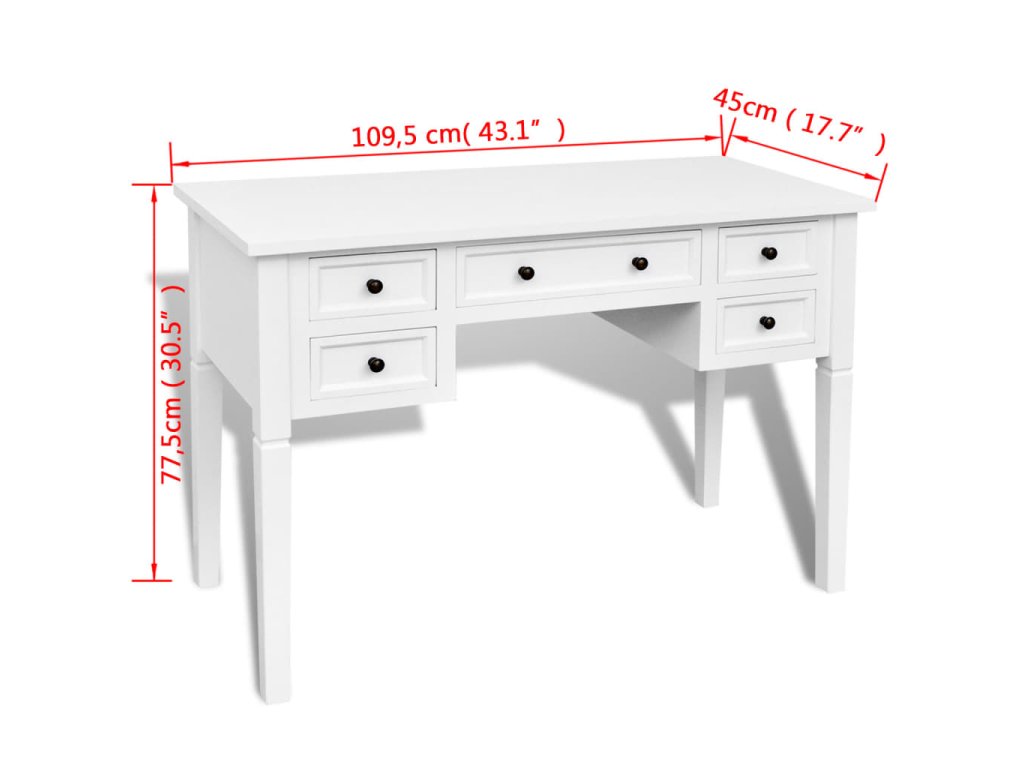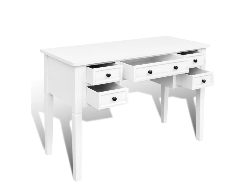 Tento odolný psací stůl má pět velkých zásuvek na psací potřeby, které vám poskytnou dost místa na uložení a uspořádání vašich složek, papírů, dokumentů a dalších kancelářských potřeb. Stolní deska navíc nabízí velký prostor na umístění dekoračních předmětů a dalších osobních věcí.