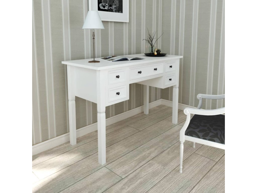 Tento bytelný psací stůl je vyroben z vysoce kvalitního MDF a borového dřeva a je natřený na bílo.