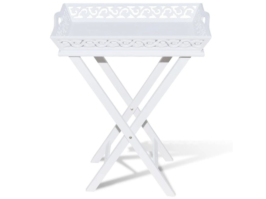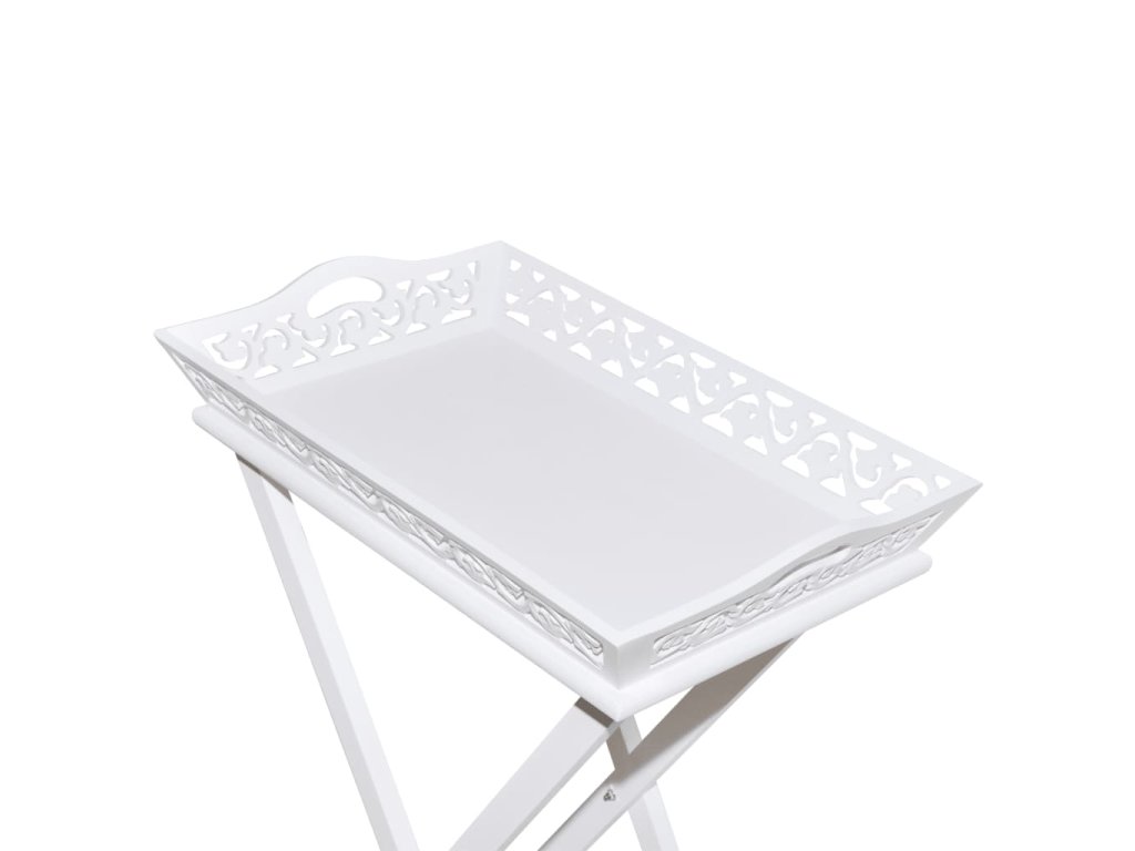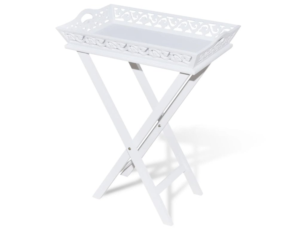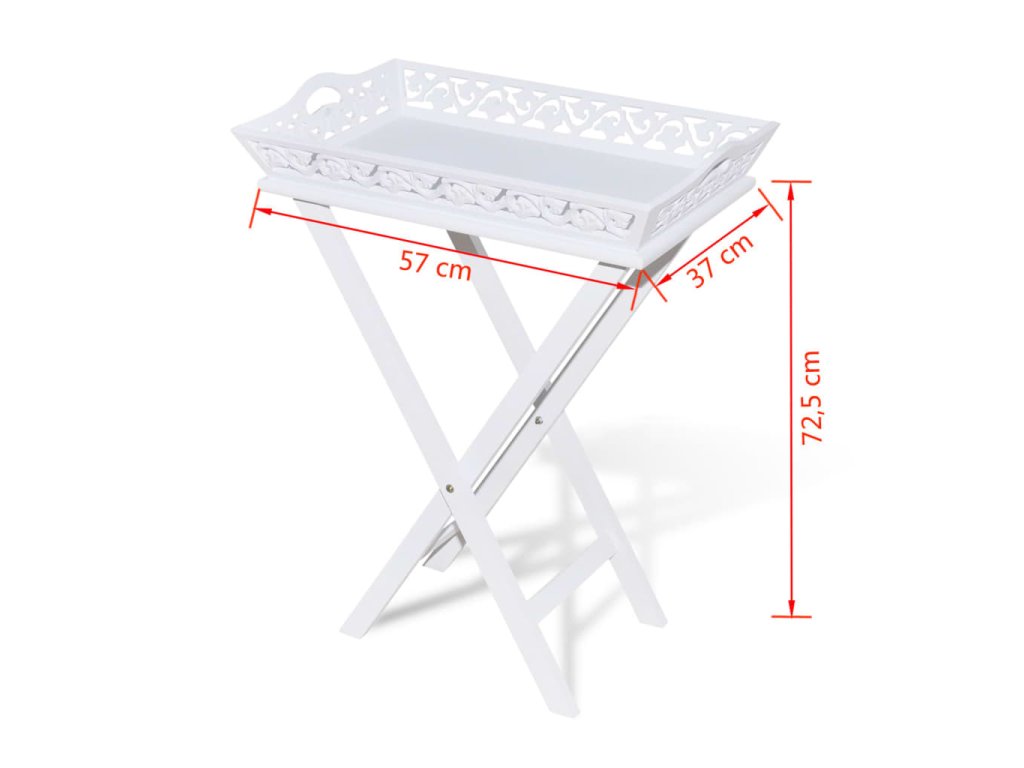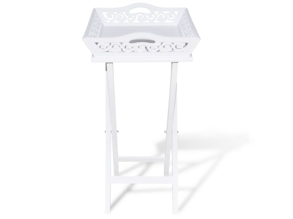 Podnos má krásný vyřezávaný design, je odnímatelný a jeho nohy se dají složit pro snadnější skladování, když stojan nepoužíváte. Ušetříte tak spoustu místa.