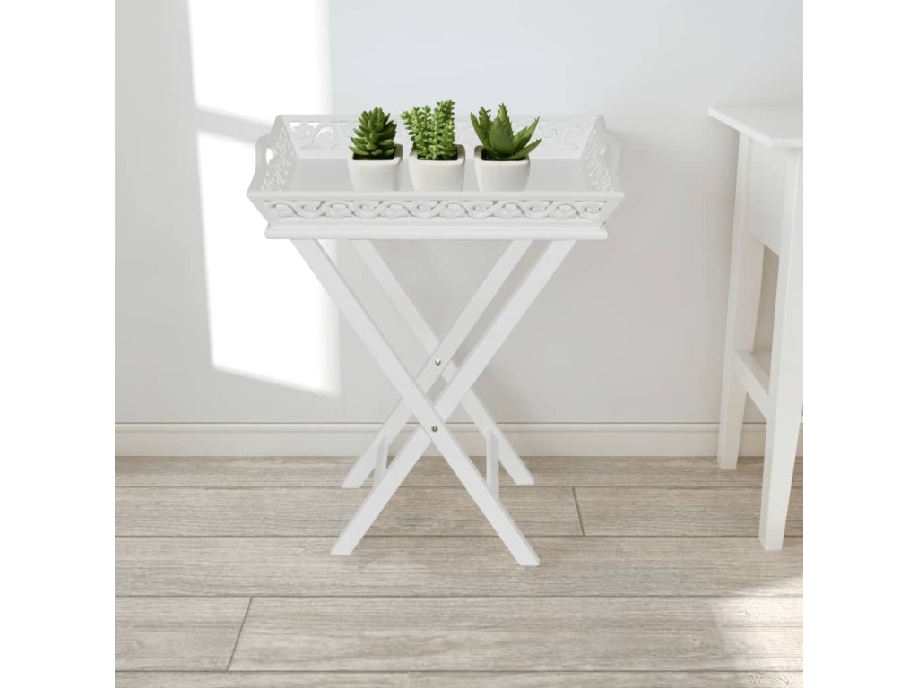 Bílý stolek s podnosem na květináče 241148