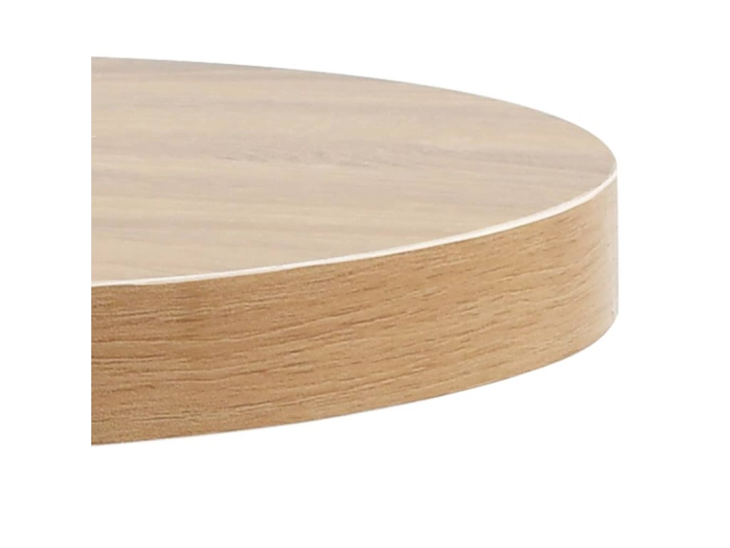 Horní deska stolu je vyrobená z MDF se vzorem dřevěné kresby a podpírá ji ocelová noha se základnou. Snadno ji očistíte vlhkým hadříkem. Stolek skvěle využijete jako samostatný kus nábytku ve svém bydlení, ale i v restauraci, kavárně nebo baru.