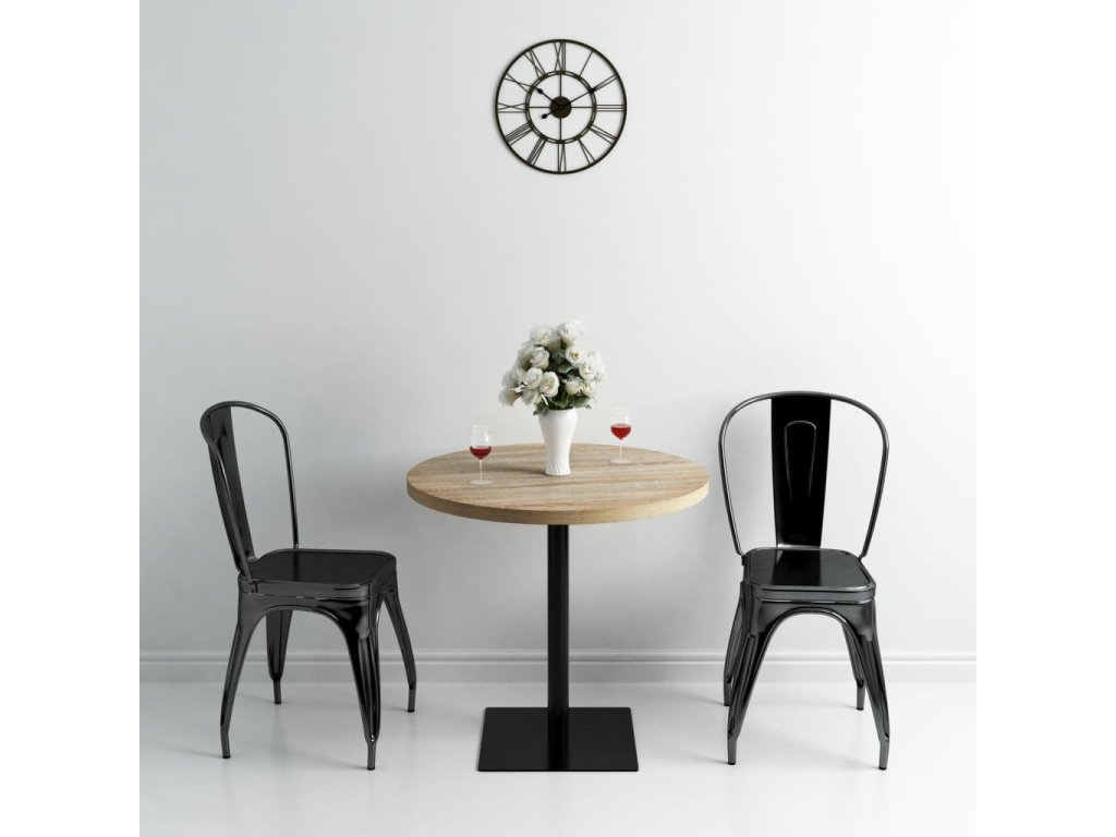 Horní deska stolu je vyrobena z MDF s povrchovou zrnitou úpravou a je podepřena ocelovou nohou a základnou. Snadno se čistí pouze vlhkým hadříkem. Použijte jej jako samotný kus ve svém interiéru, restauraci, kavárně nebo baru.