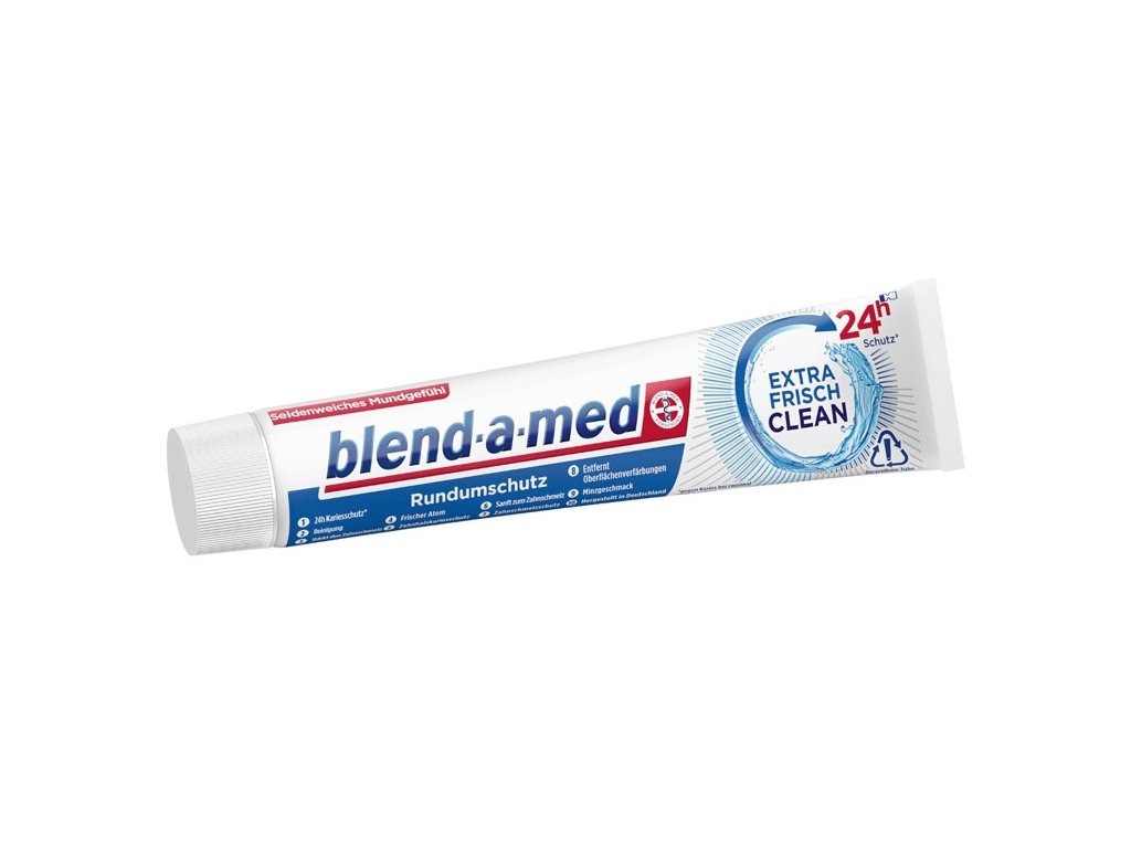 Blend-a-med zubní pasta - Extra Firsch Clean 75mlZubní pasta Extra Clean blend-a-med s fluoridem posiluje zuby a zubní sklovinu a poskytuje dlouhodobou ochranu před nežádoucím zubním kazem. Odstraňuje povrchové zabarvení a se svěží mátou zanechává příjemný pocit svěžesti v celých ústech.