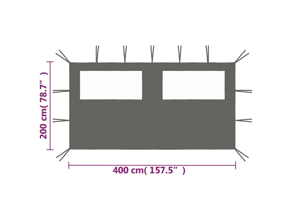Boční stěna k party stanu s okny 4 x 2 m antracitová 3070423