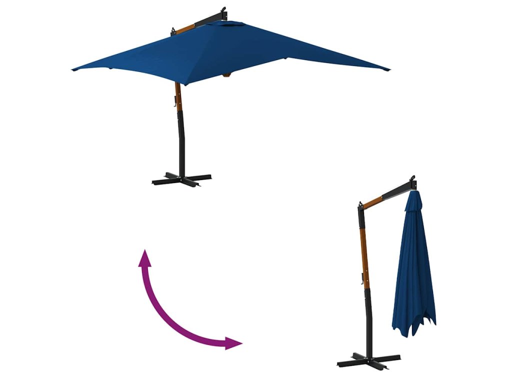 Boční zahradní slunečník dřevěná tyč 400 x 300 cm azurově modrý 318435