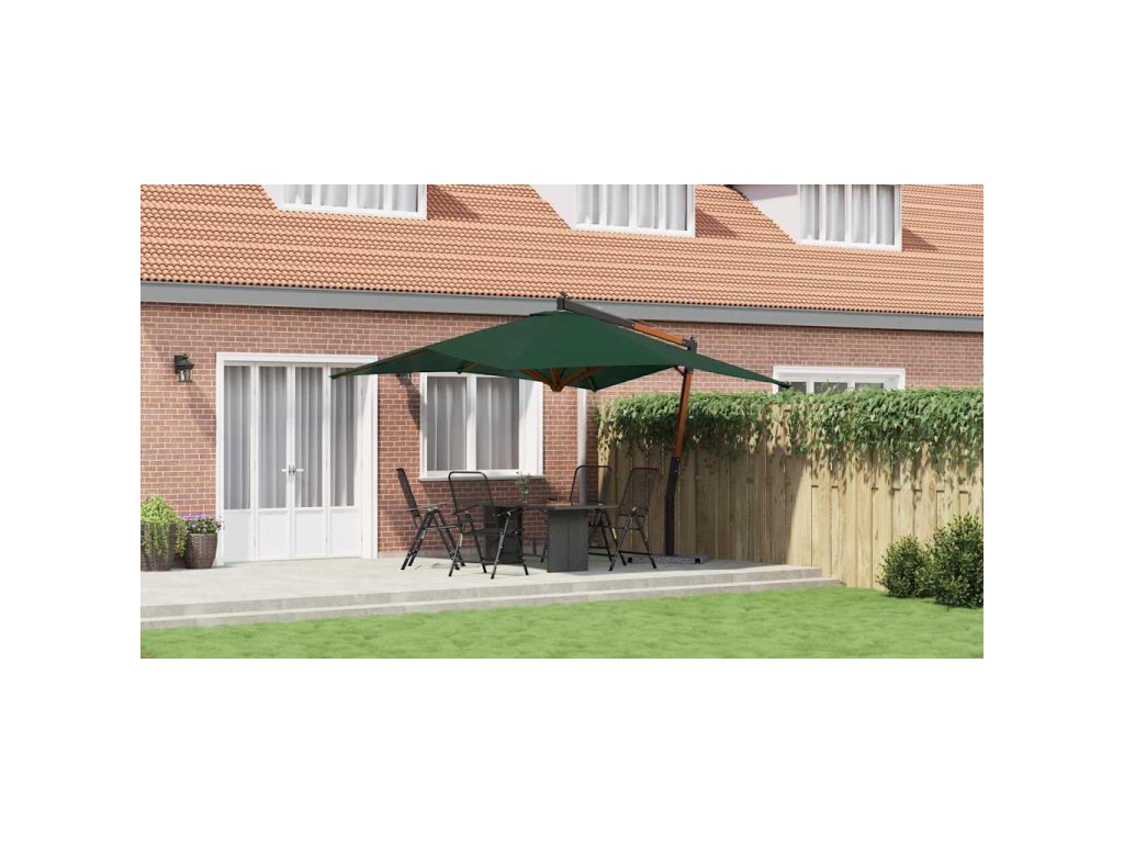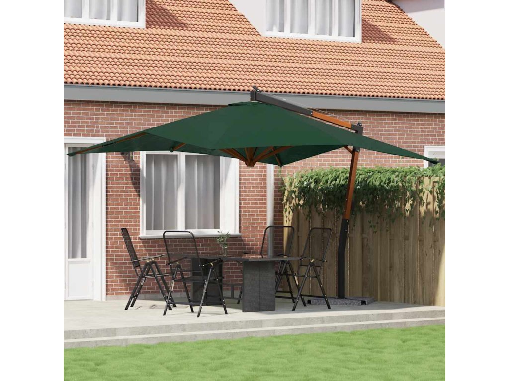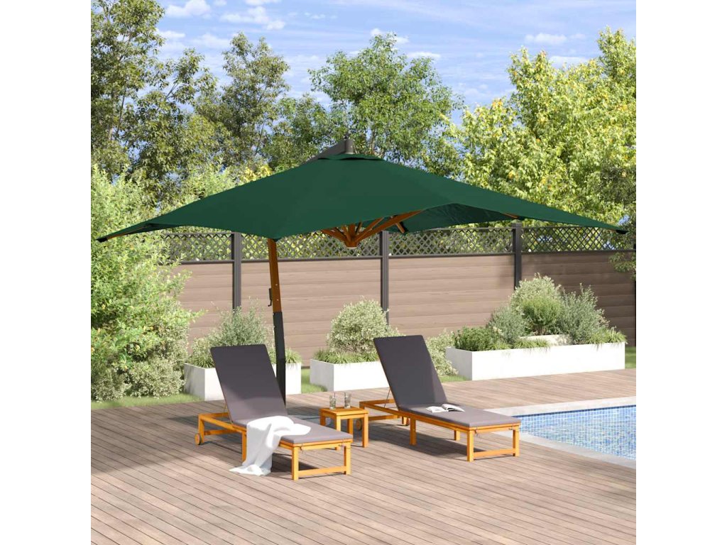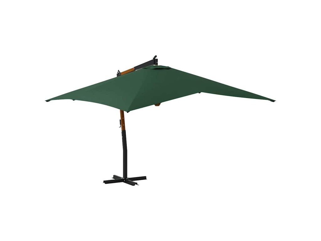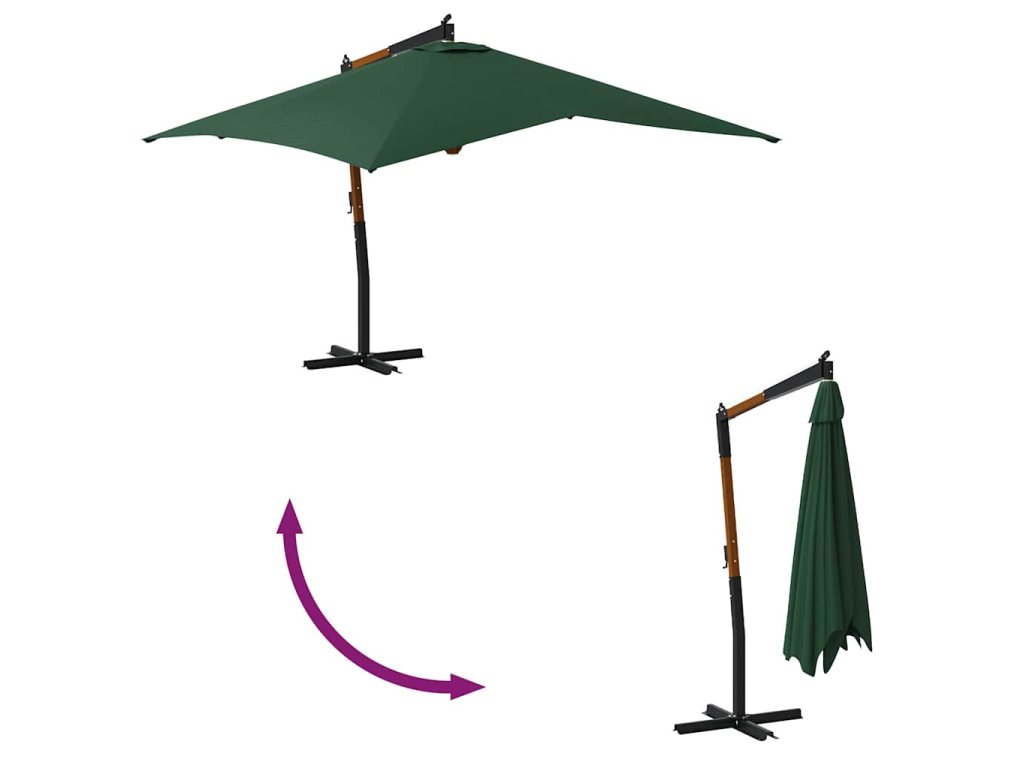 Boční zahradní slunečník s dřevěnou tyčí 400 x 300 cm zelený 318428
