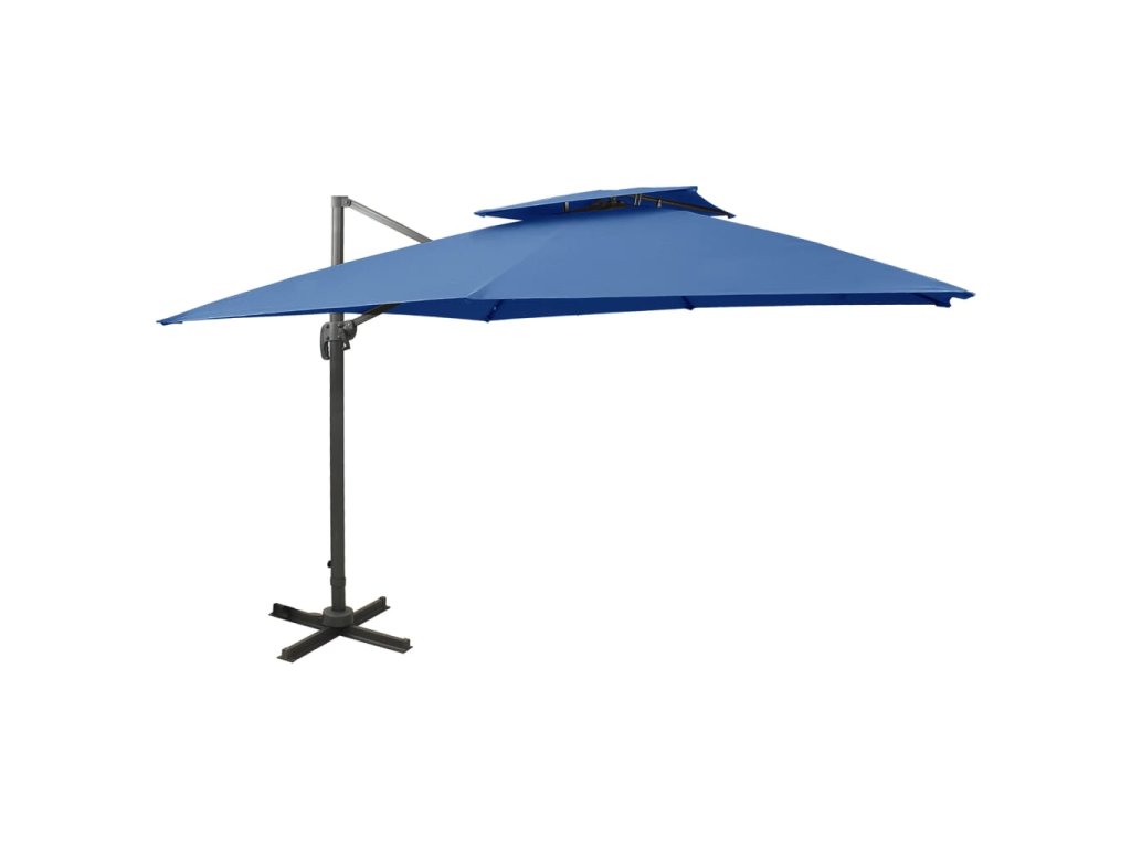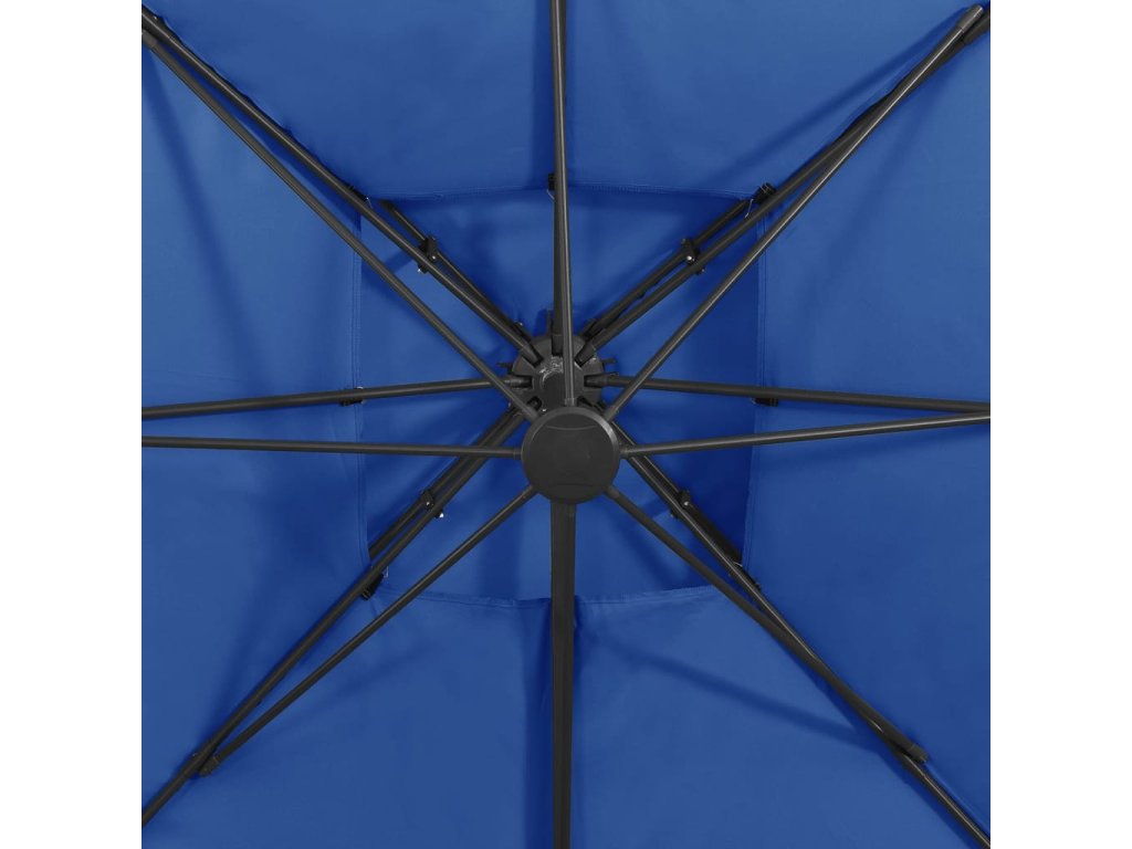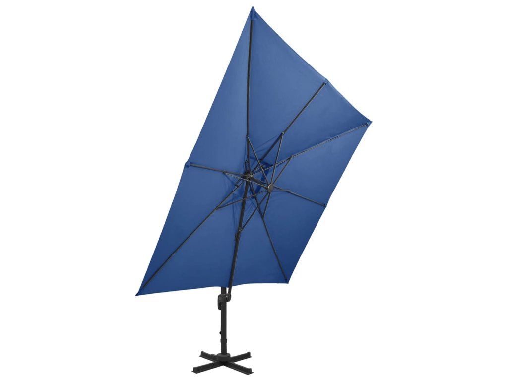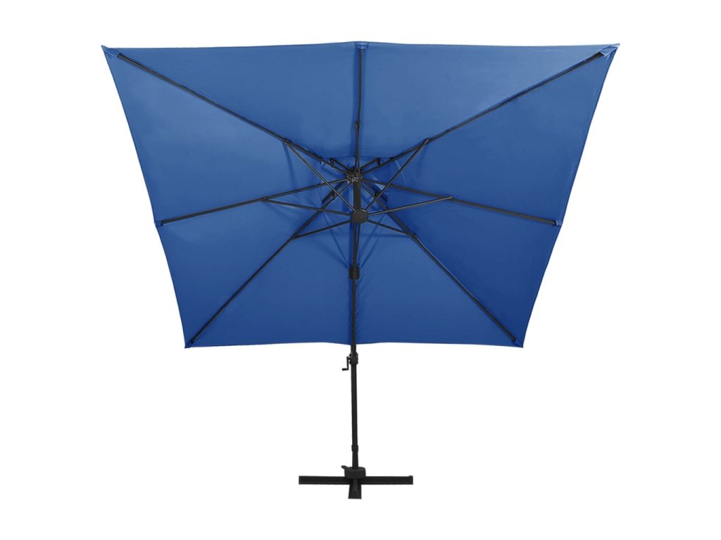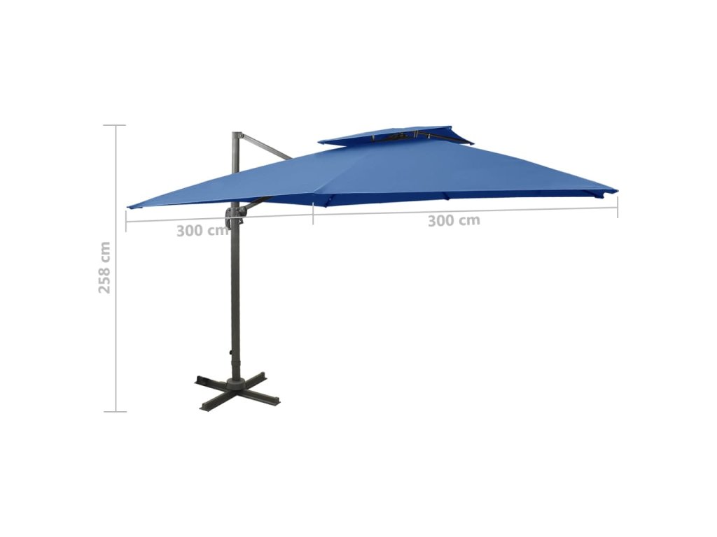Boční zahradní slunečník s dvojitou stříškou 300x300 cm azurový 312378