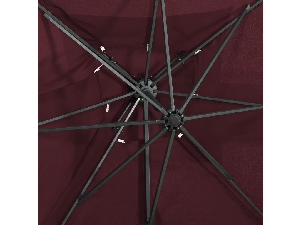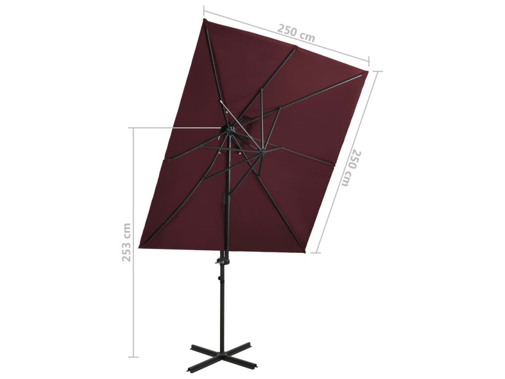 Boční zahradní slunečník s dvojitou stříškou bordó 250 x 250 cm 312366