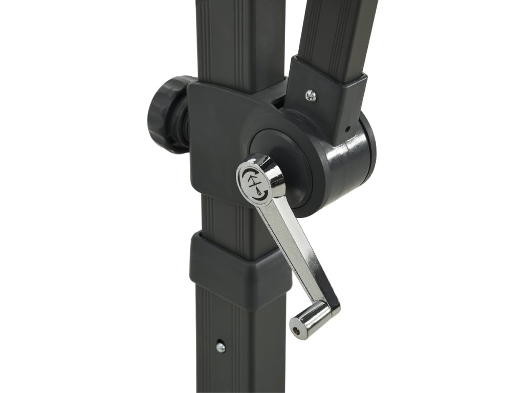 Stříška slunečníku je vyrobená z polyesterové tkaniny, která nebledne a nepropouští škodlivé UV záření, takže vám poskytne optimální ochranu před sluncem. Navíc se snadno čistí. Křížová základna zaručuje lepší stabilitu. Exkluzivní konstrukce vám umožní slunečník naklánět a otáčet o 360 stupňů, aby blokoval slunce v každé situaci. Silná hliníková tyč s 8 žebry zajišťuje, že se slunečník nehýbe a vydrží vám dlouho sloužit. Zahradní slunečník je vybavený klikovým mechanismem, dá se tedy bez námahy otevírat i zavírat. Design s dvojitou stříškou napomáhá lepší ventilaci.