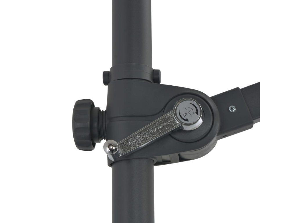 Stříška slunečníku je vyrobena z polyesterové tkaniny, která nepropouští škodlivé UV záření, neztrácí barvu a poskytne vám optimální ochranu před sluncem, a navíc se snadno čistí. Má 24 solárně poháněných LED světel, která při západu slunce automaticky osvětlí váš venkovní prostor a vytvoří útulnou atmosféru. Slunečník je vybaven pevnou křížovou základnou pro větší stabilitu. Pro otevření a zavření tohoto zahradního slunečníku stačí otočit páčkou na tyči. Zatlačením nahoru nebo dolů si pak můžete nastavit úhel stříšky. Středovou tyč lze pomocí pedálu otáčet o 360 stupňů. Silná hliníková tyč s práškovým nástřikem s 8 odolnými žebry slunečníku zajišťuje stabilitu a dlouhou životnost.